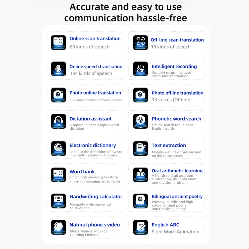 *Multi-language Support: This Translator Pen offers online translation in 134 languages and supports offline translation in 13 languages, making it an essential tool for effective communication across diverse languages.